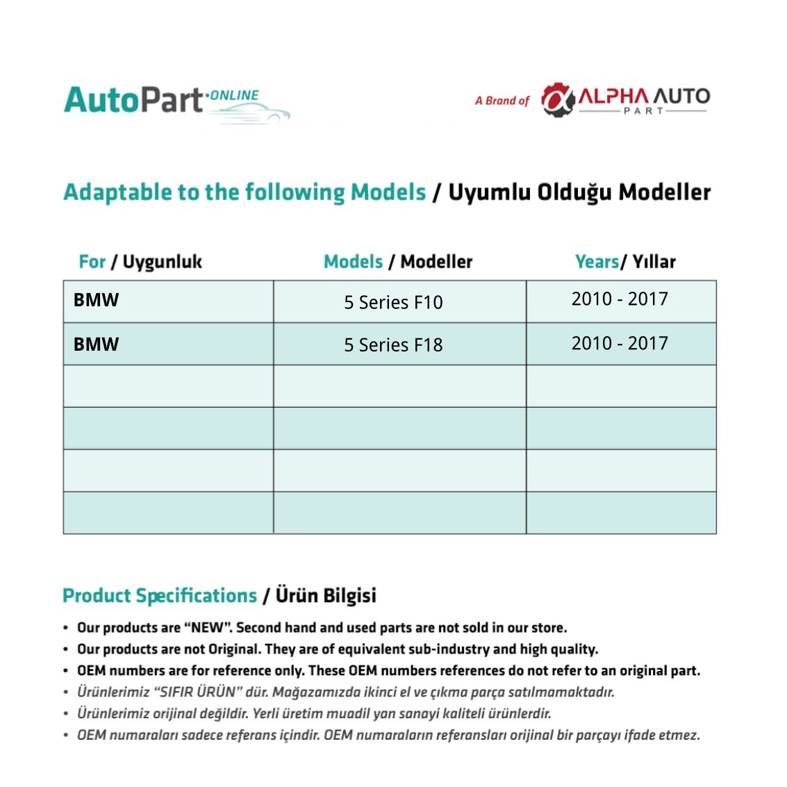 BMW 5 Serisi F10,F18 için Yan Ayna Katlama Dişlisi