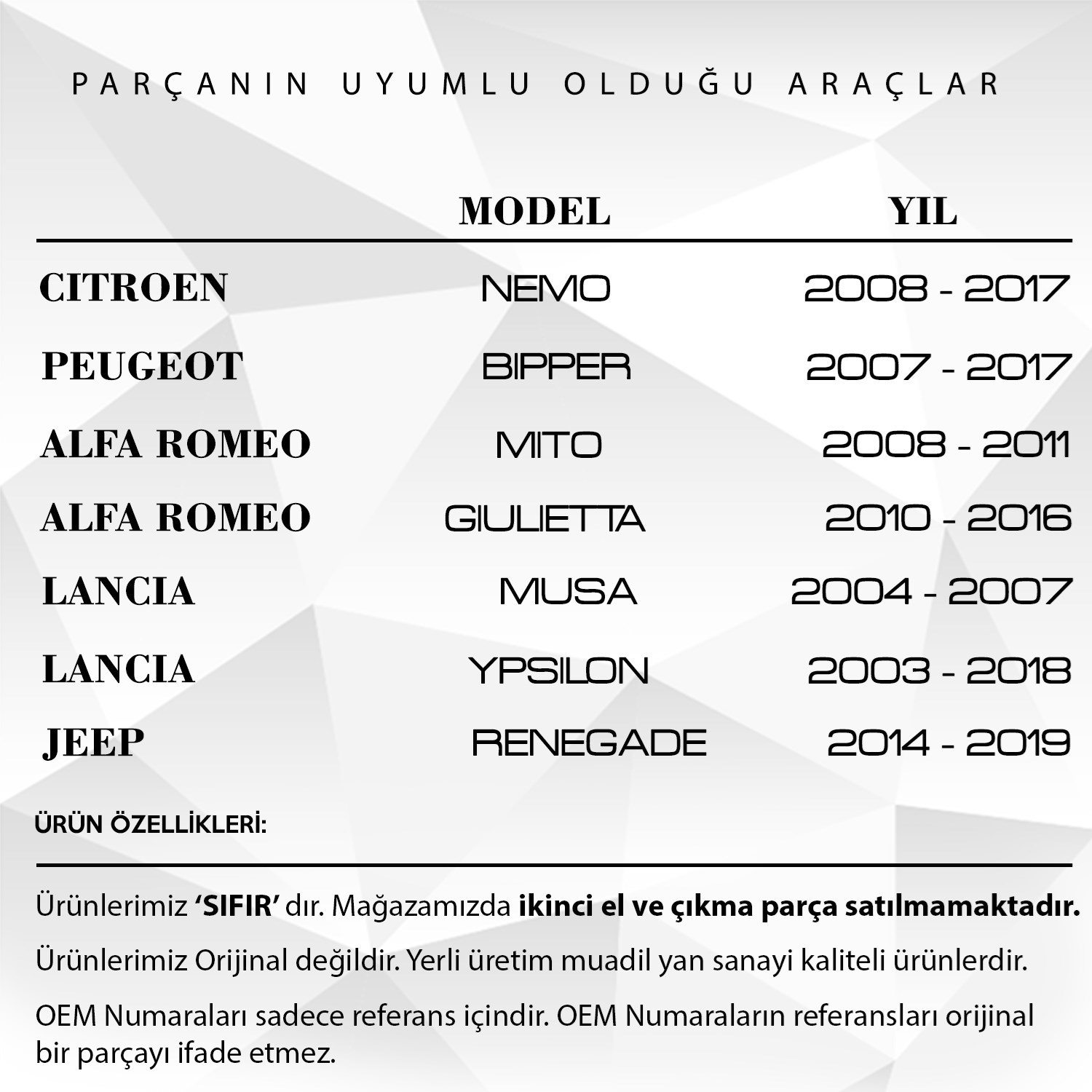 Citroen, Peugeot, Fiat, Alfa Romeo için Bagaj Kaput Ayar Lastiği
