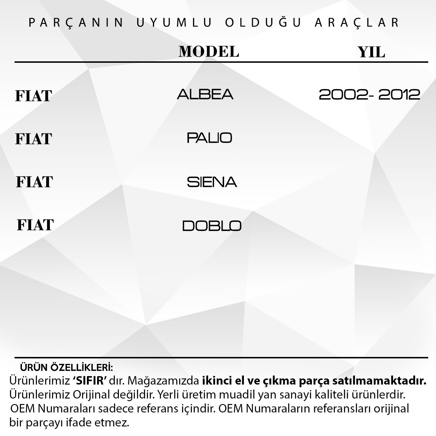 Fiat Doblo, Albea, Palio, Siena için Cam Kapı Fitil Klipsi