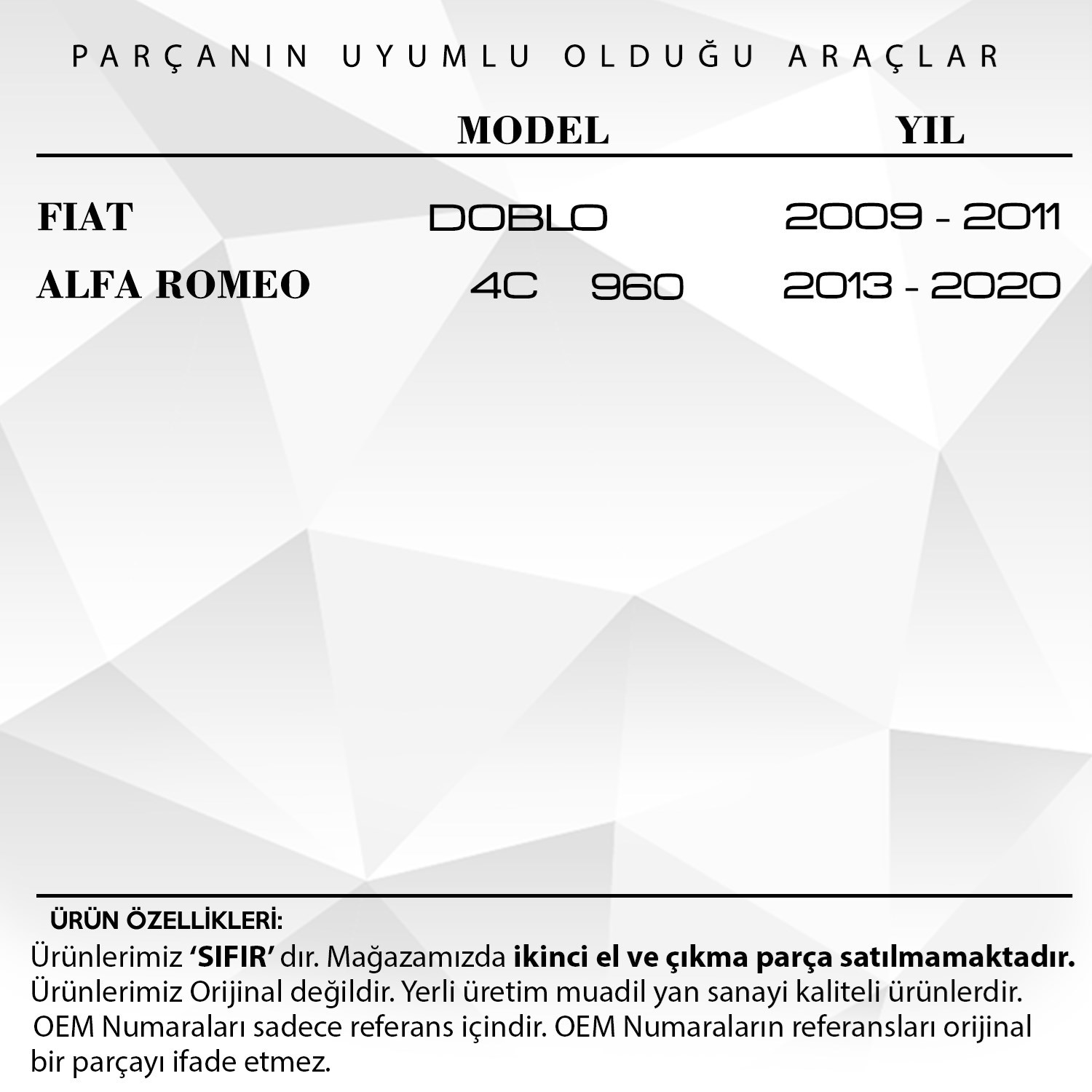 Fiat Doblo, Alfa Romeo 4C için Kaput Tel Tutucu Klipsi