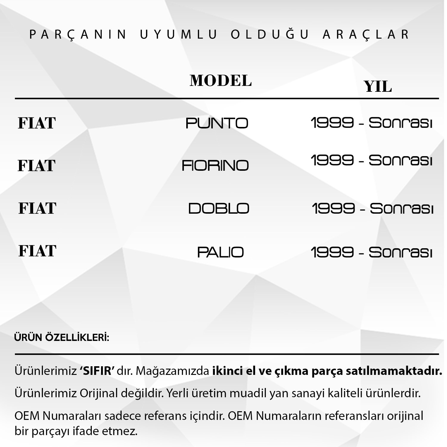 Fiat Doblo Punto Fiorino Palio Albea için Bagaj Kilit Tamir Parça