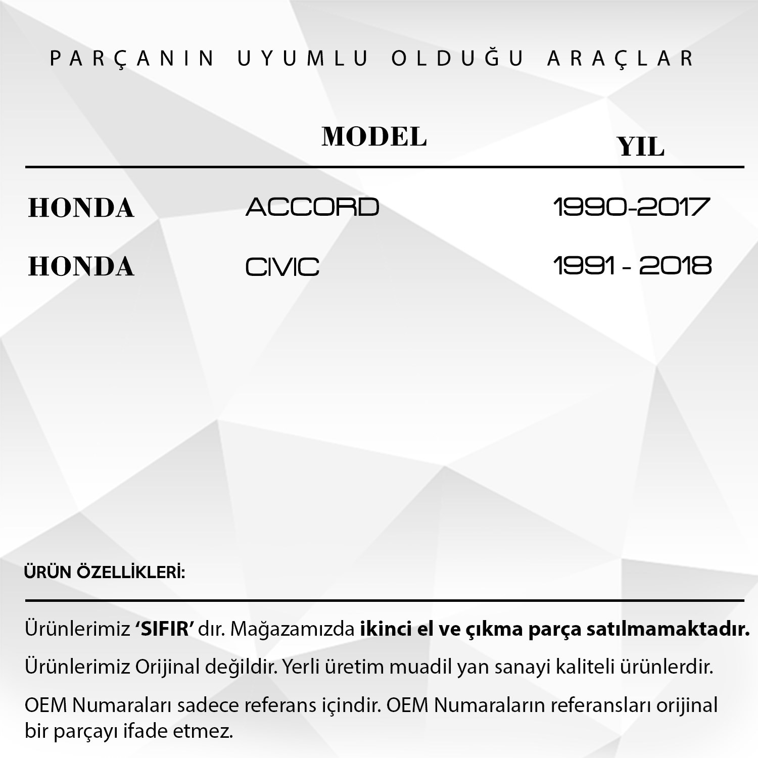 Honda Accord, Civic için Debriyaj ve Fren Pedal Lastiği