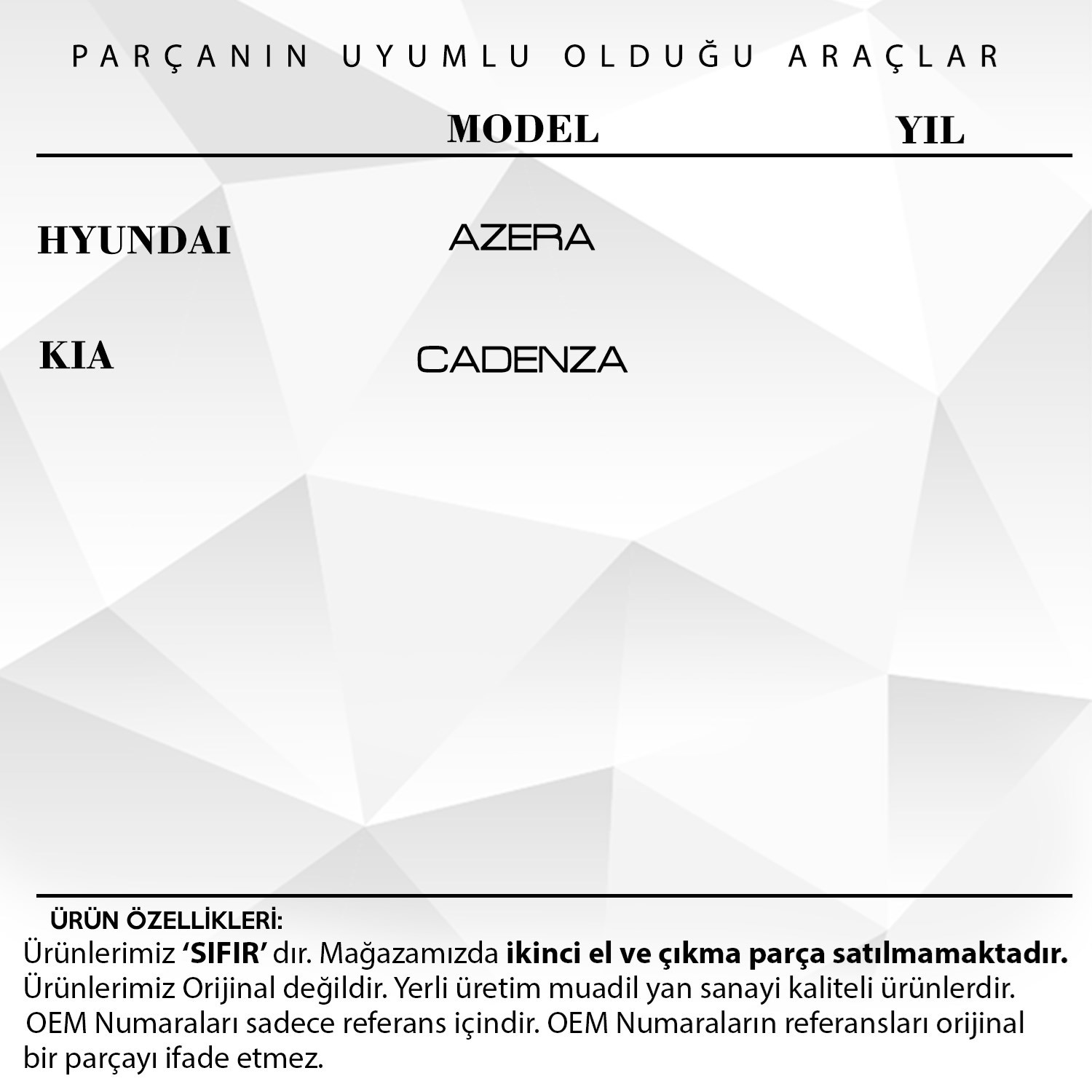 Hyundai Azera, Kia Cadenza için Arka Perde Dişlisi (30 Diş)