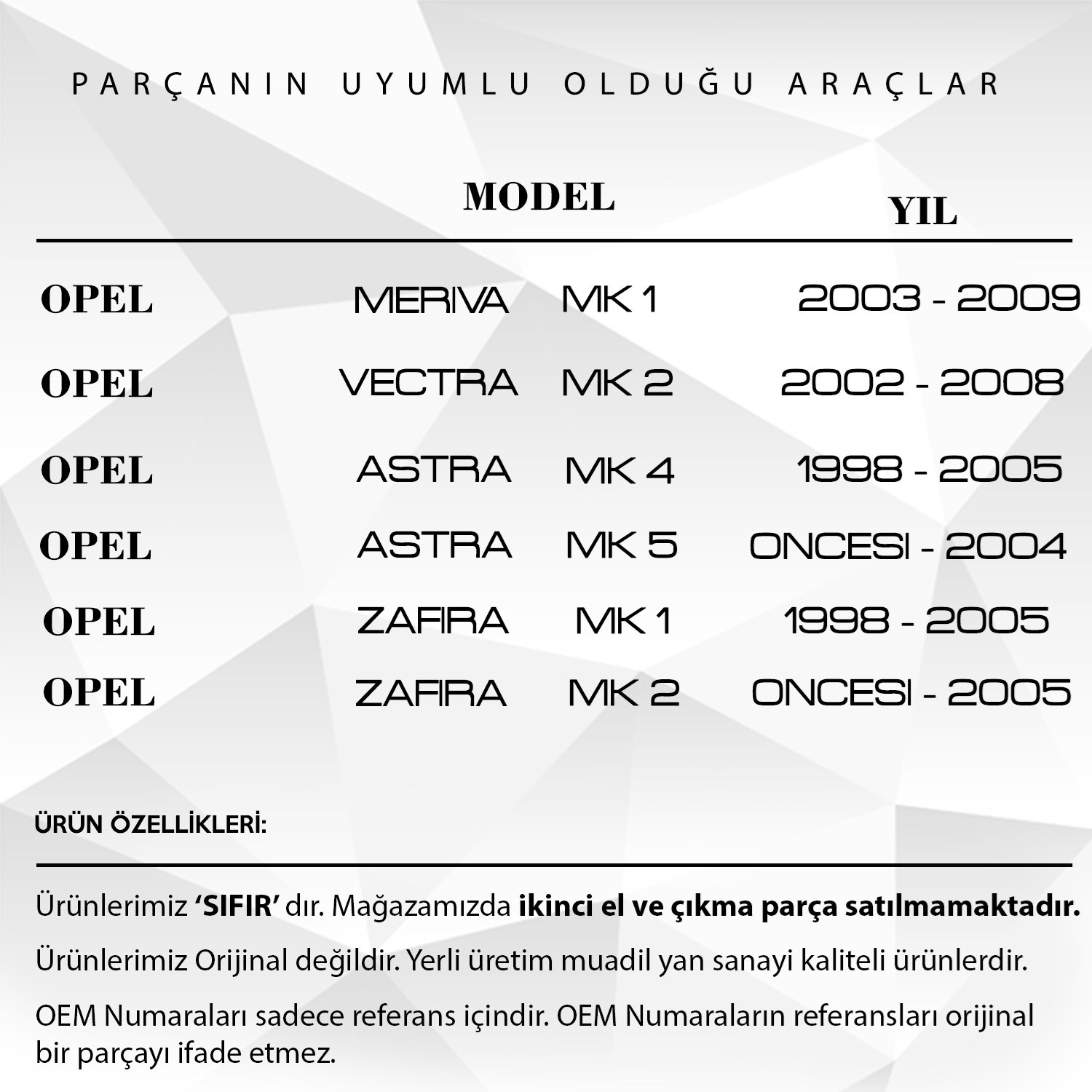 Peugeot Partner 1-2-3,Bipper için Arka Kelebek Cam Mandalı Tamir Seti
