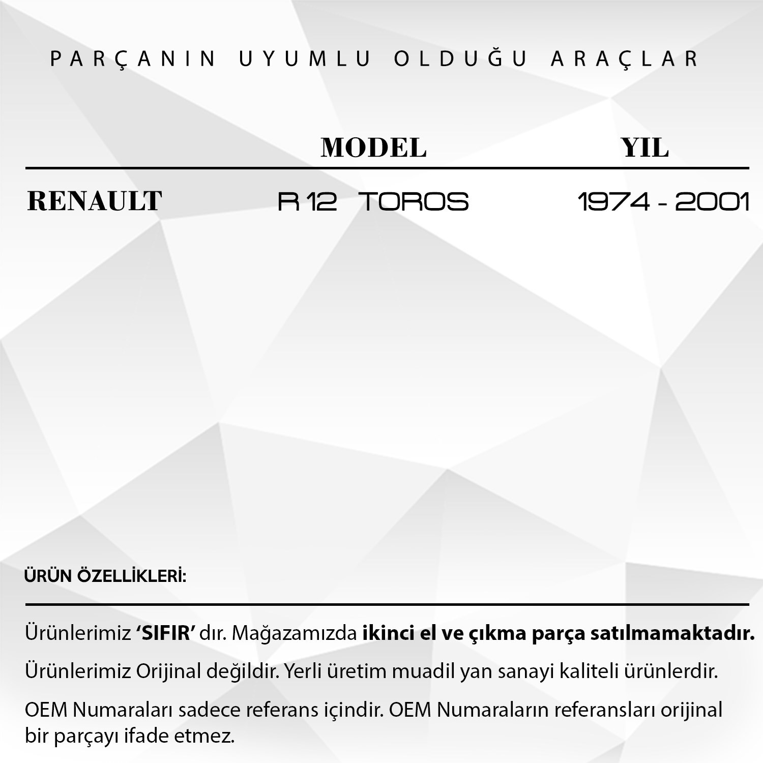 / Renault 12 Toros için Dış Kapı Kolu