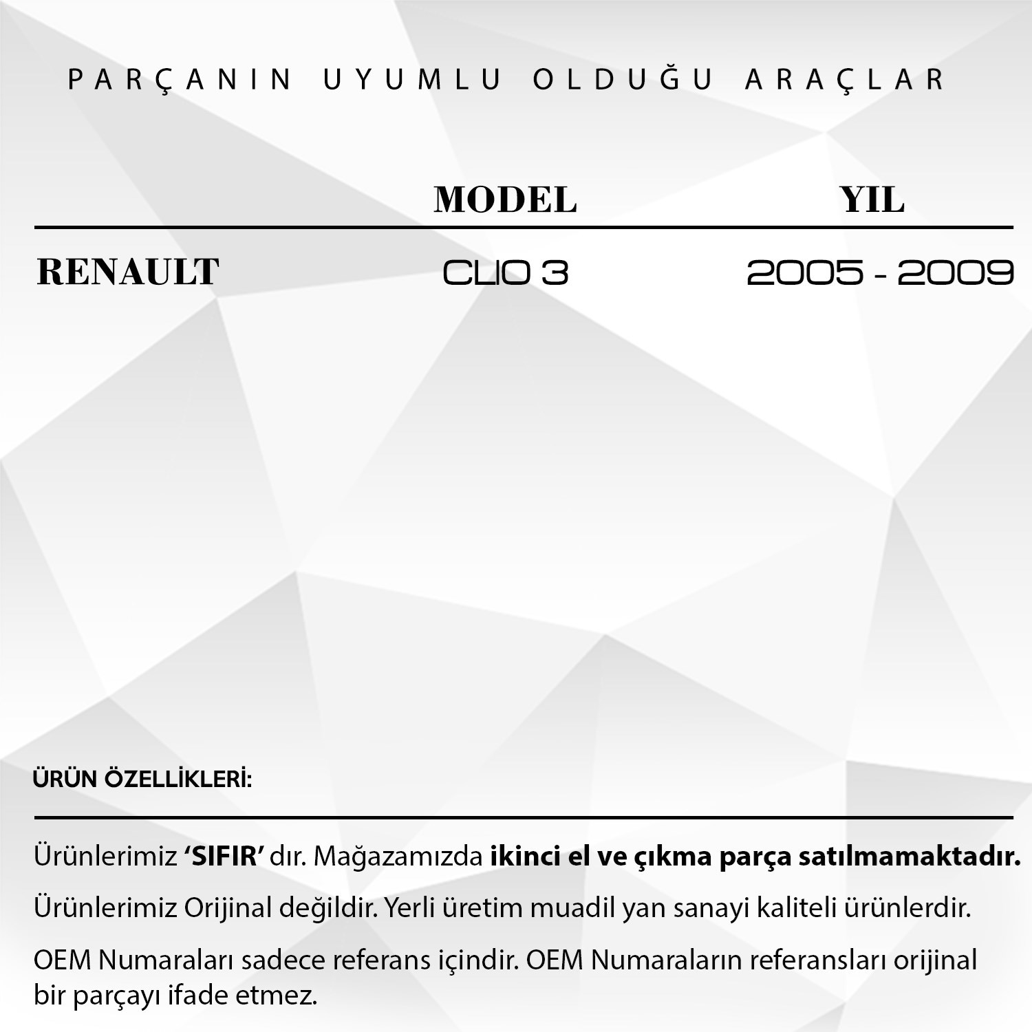 Renault Clio 3 için Ön Sağ Kapı Cam Tamir Takımı
