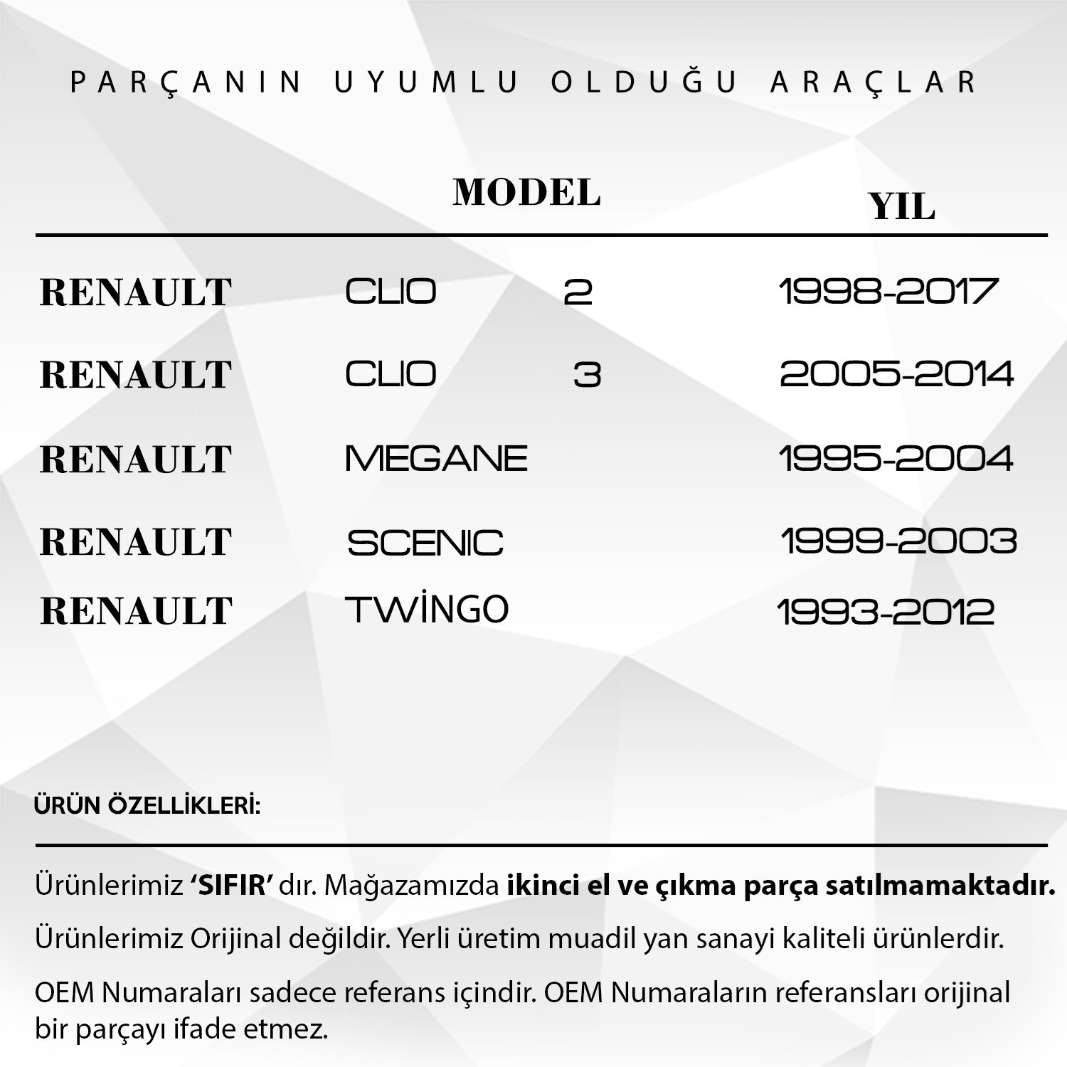 Renault Clio, Scenic, Megane, Twingo için Bagaj Kilit Dişlisi Seti