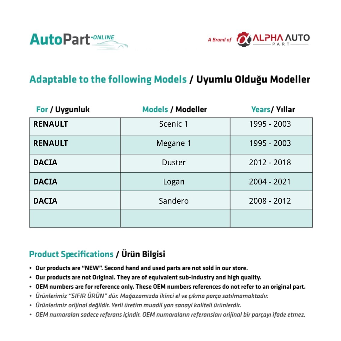 Renault Megane 1, Dacia Duster için Su Fıskiye Memesi 2’li