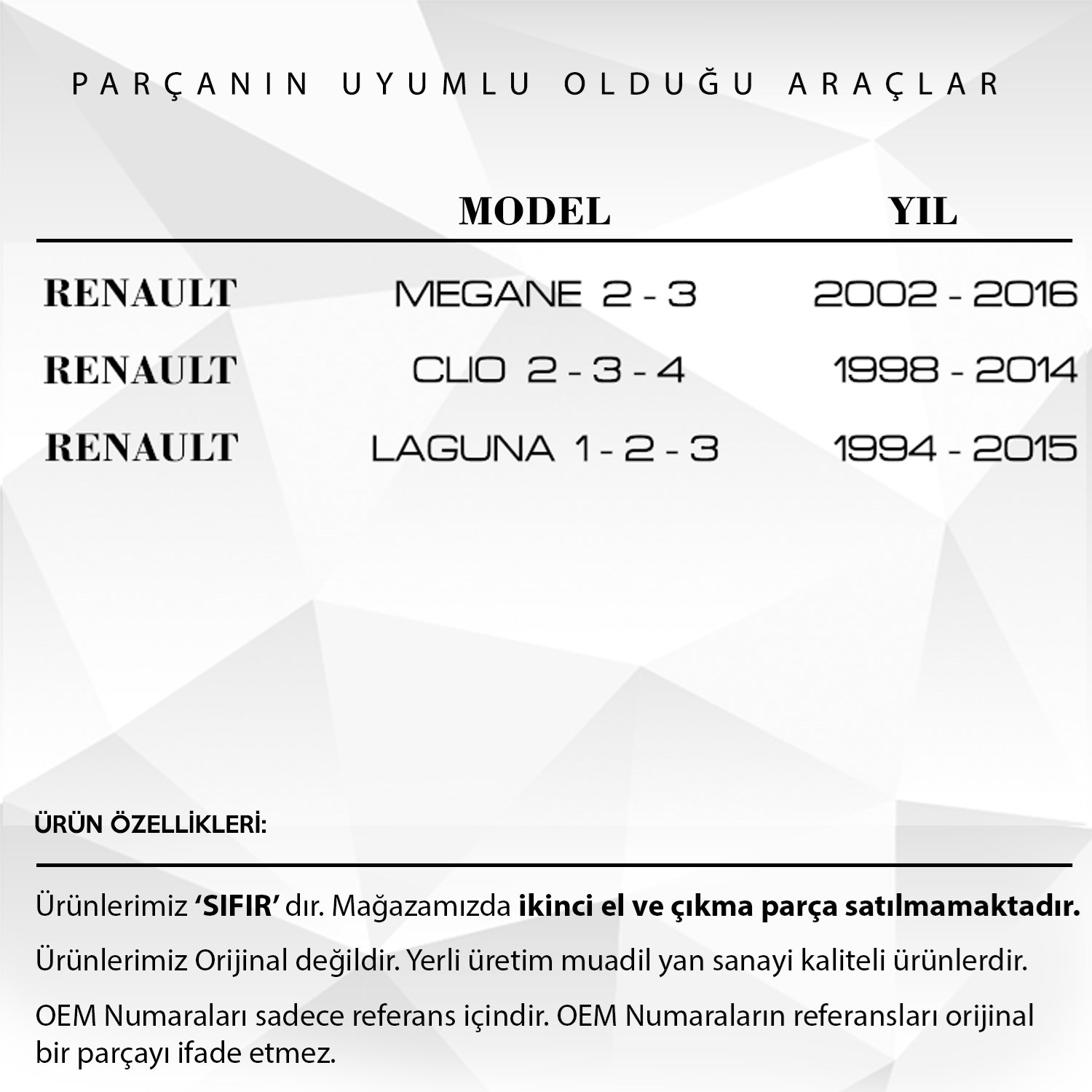 Renault Megane, Clio, Laguna için Bagaj Raf Askı İpi 2’li