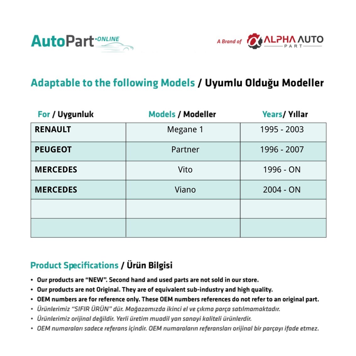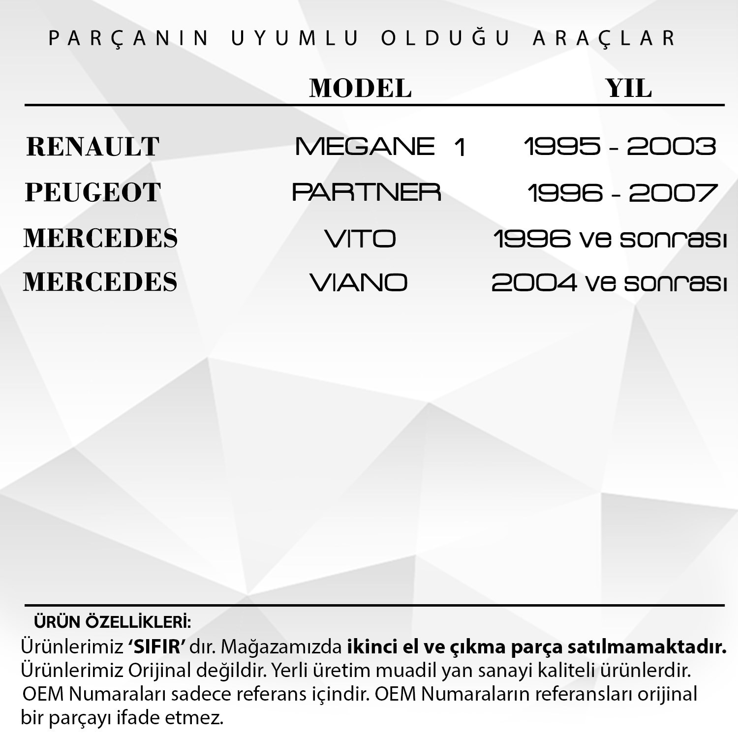 Renault Megane1,Peugeot Partner, Vito için Ön Cam Kriko Makarası