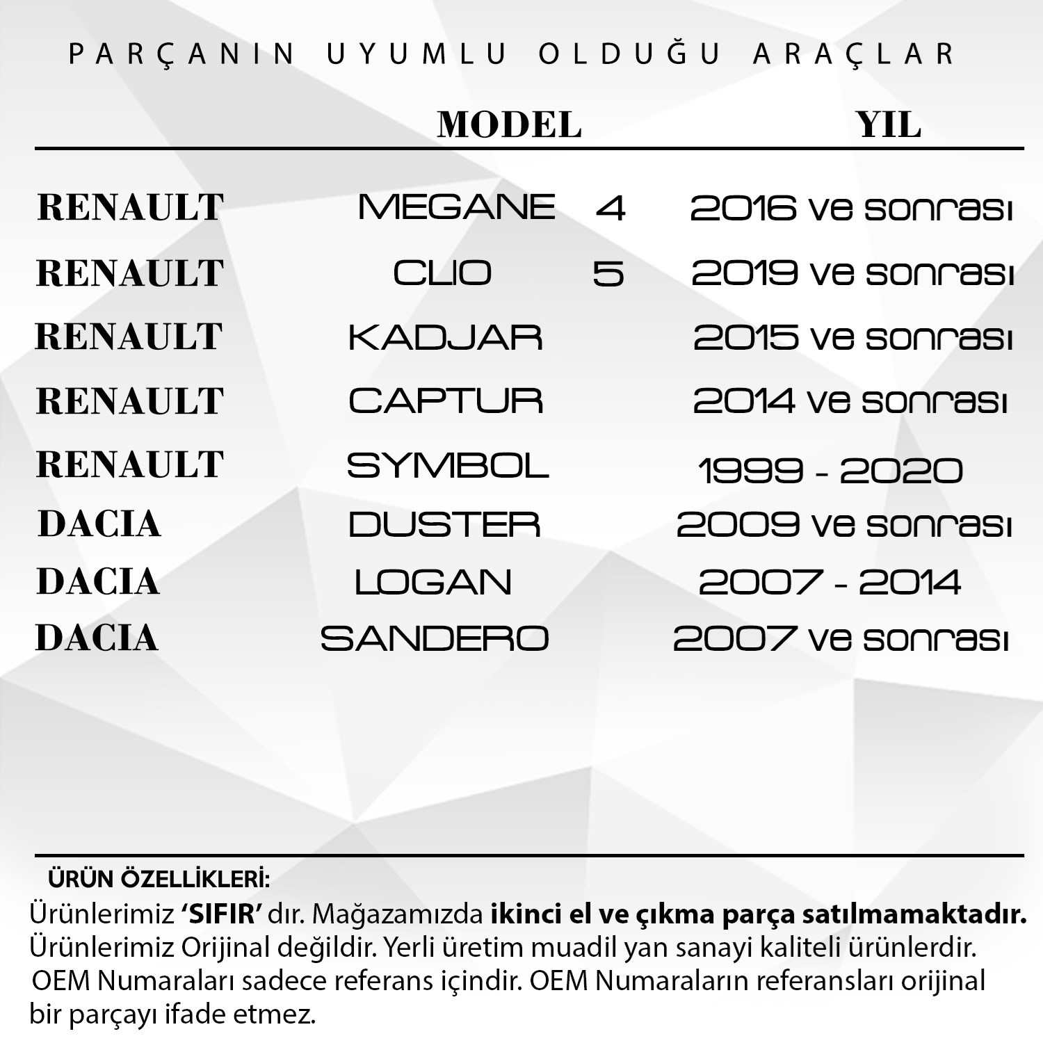 Renault Megane4,Clio5, Dacia Duster için Anahtar Buton Lastiği
