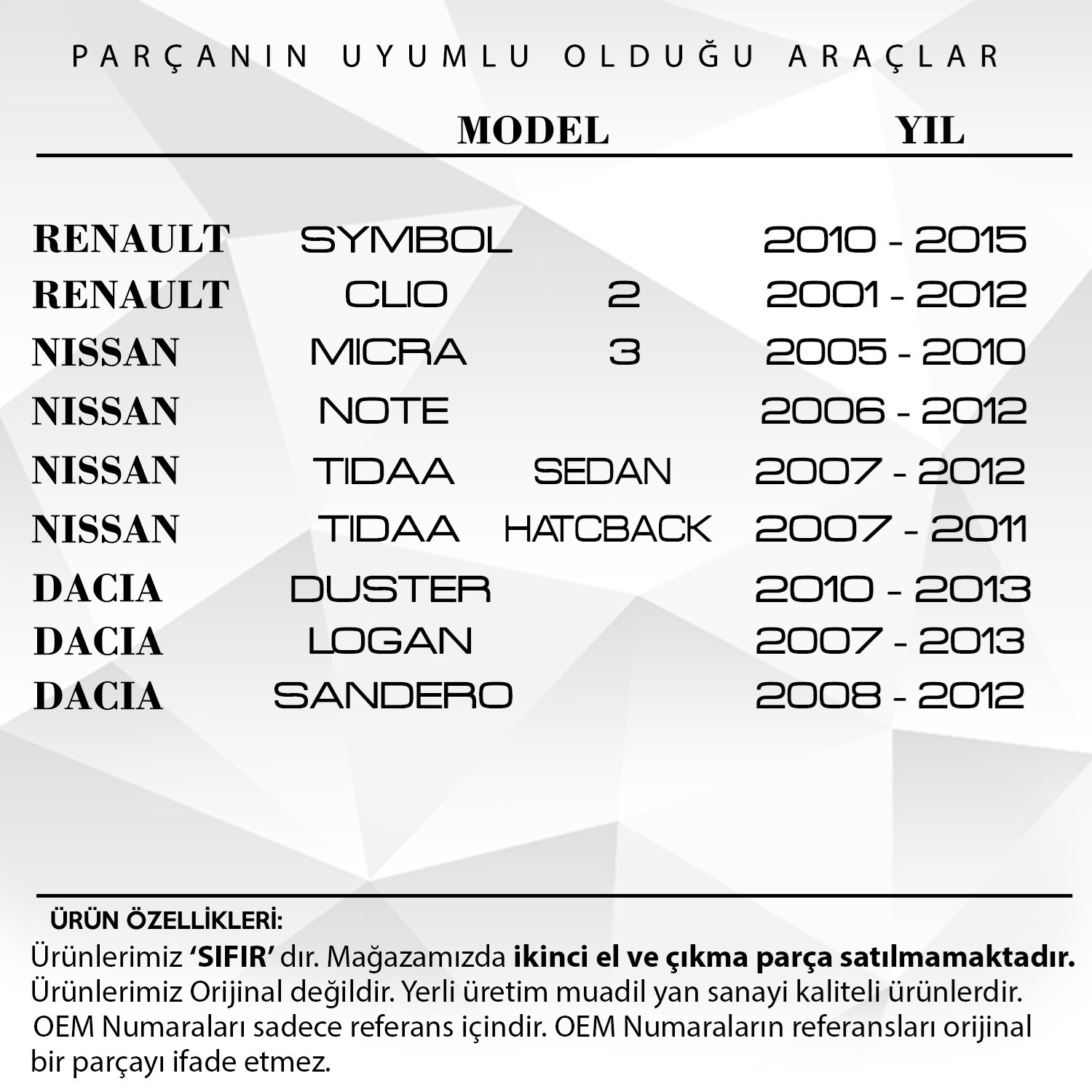 Renault Symbol,Clio, Nissan Micra3, Dacia Duster için Motor Yağ Çubuğu