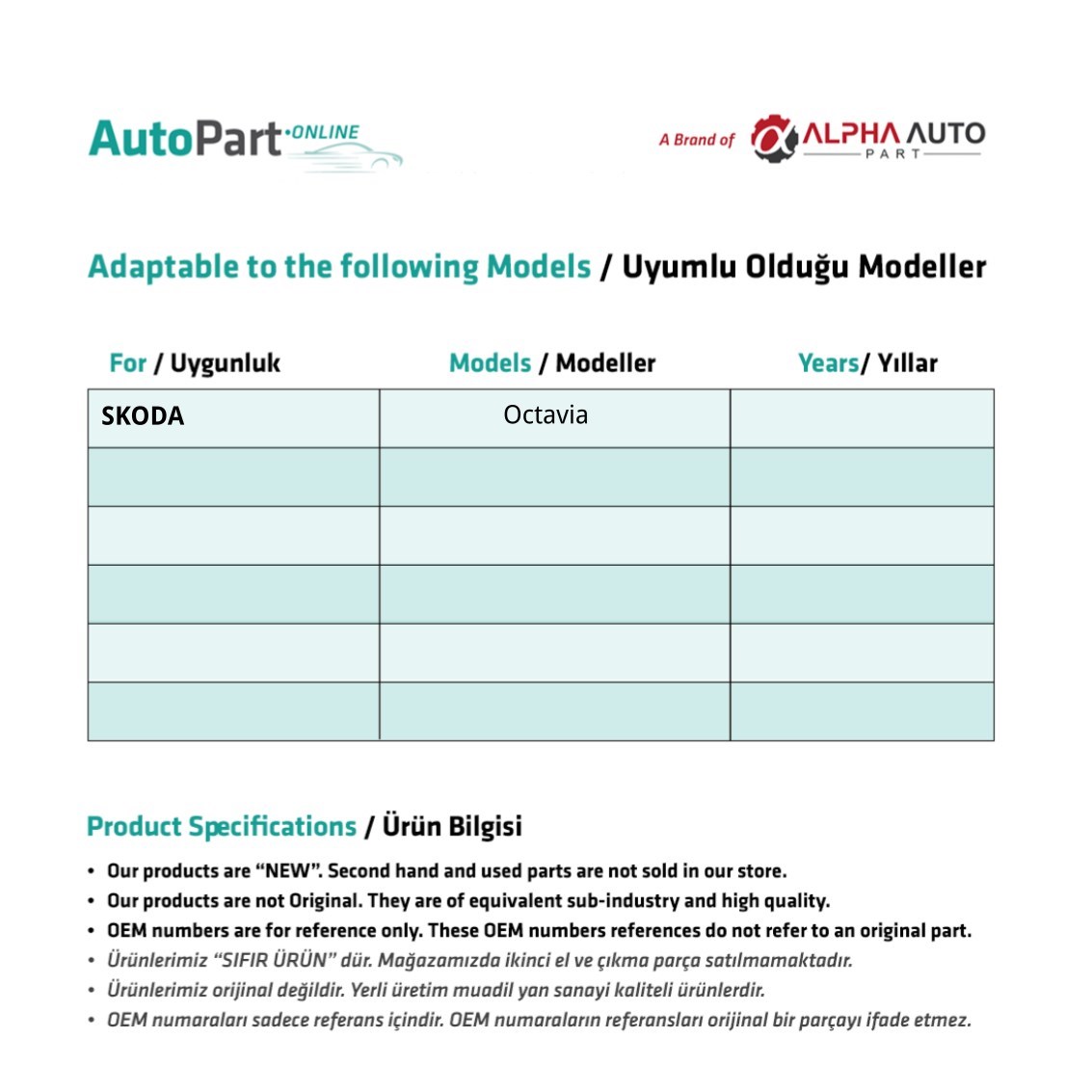 Skoda Octavia için Kilit Tamir Seti