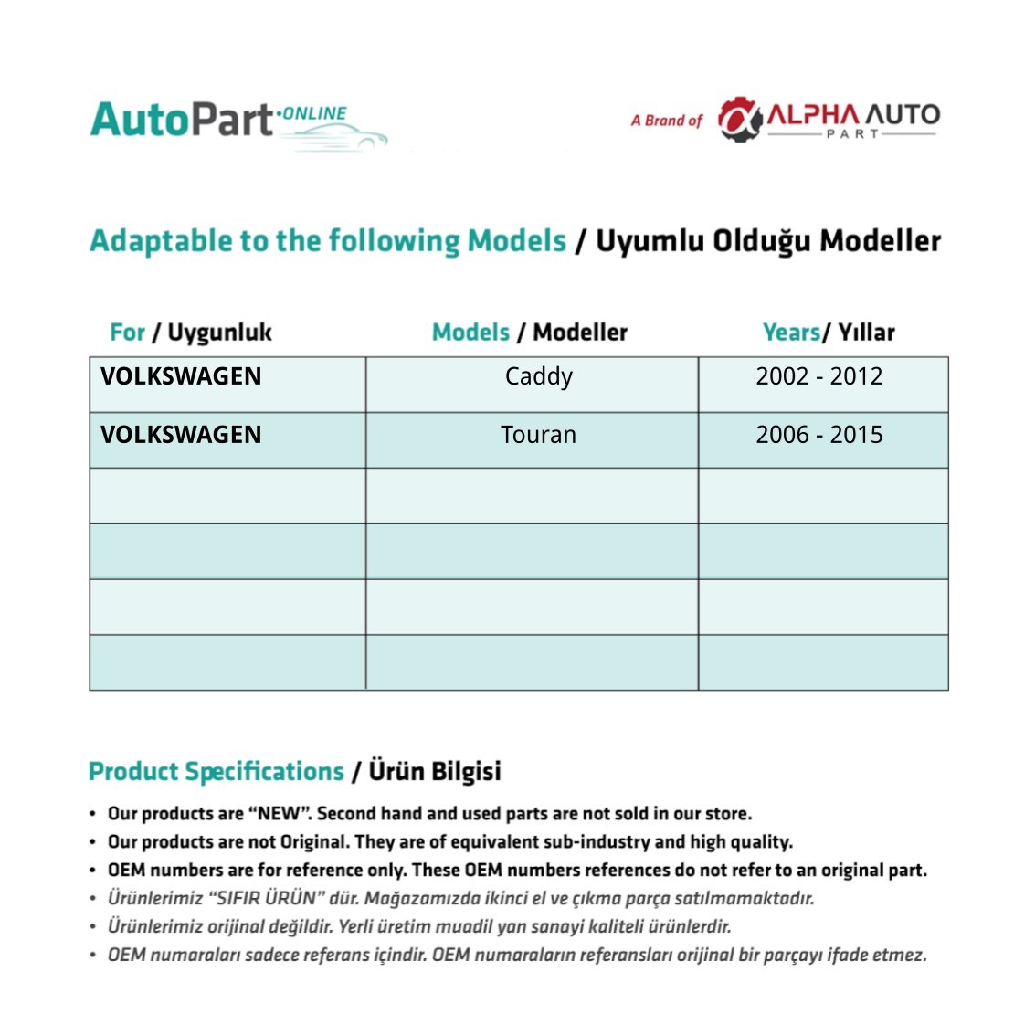 Volkswagen Caddy, Touran için Ön Kapı Açma Teli- Sol