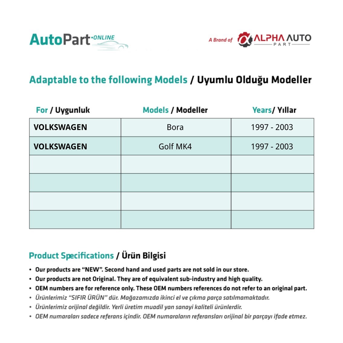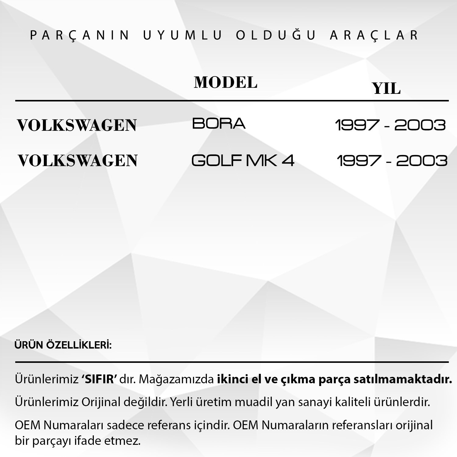 Volkswagen Golf 4 için Sağ Ön Kapı Cam Tamir Takımı