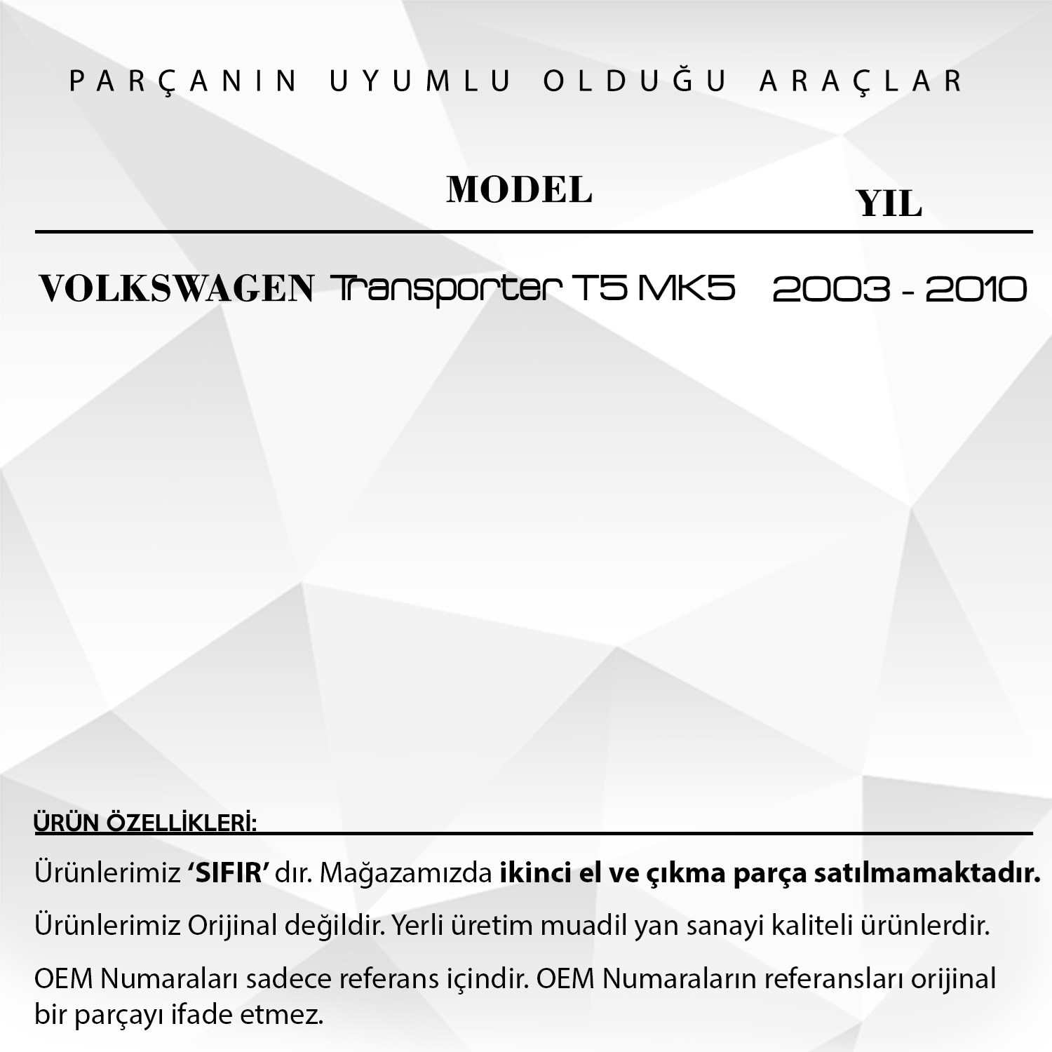 Volkswagen Transporter T5 için Arka Tampon Reflektörü – SAĞ